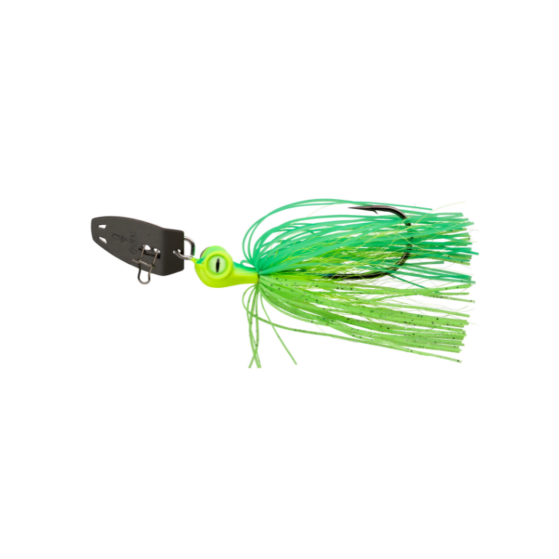 Ce bladed jig Gunki dispose d'un signal 'œil' très présent, particulièrement hypnotique dans l'eau, qui permet au poisson de parfaitement cibler leur attaque. Doté d'une palette de taille volontairement réduite, il émet des vibrations puissantes et ajustées, adaptées aux endroits surpêchés. Comme tous les bladed jig, il conjugue de forts effets vibratoires et d'importants flashs lumineux. Sa compacité, l'inclinaison de sa palette et l'angle qu'elle forme avec le lest, font du Boomer un leurre de prospection linéaire tout terrain adapté aux endroits encombrés. Ultra polyvalent, il est efficace sur les brochets, sandres, perches, black-bass et silures ! Sa jupe est ligaturée avec un fil métallique pour plus de résistance aux coupures. Les coloris M.S. associent du poil naturel et des fibres synthétiques aux brins silicones de la jupe.Cette jupe mixte envoie des signaux complexes, particulièrement attractifs pour les carnassiers. Plus volumineuse, elle pousse davantage d'eau et est plus mobile. Elle est également plus endurante aux dents des brochets qu'une jupe 100% silicone.