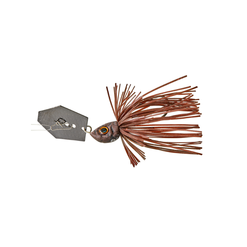 Le CRAZY CRUSHER JR. (Junior) sera votre nouvelle référence pour pêcher les zones peu profondes, lits d'herbiers et couverts végétaux. Sa tête détaillée en Tungstène composite (alliage eco-friendly sans plomb) est précédée d’une palette métallique articulée et présentée à 45° qui lui permet de butter sur les obstacles et émet de véritables signaux attractifs qui confèrent au volume de sa jupe en silicone une nage très vibrante sur simple récupération et ce, dès que le leurre touche l’eau. Pensé et conçu principalement pour la pêche de la perche et du black-bass, il est également prédisposé pour la traque d'autres espèces comme le brochet lorsqu'il se focalise sur des petites proies. Le maintien du leurre est assuré par une bille ovale en époxy directement coulée sur la hampe permettant de ne pas le déformer ni de le déchirer. De plus cette bille en époxy déclenche les rayons ultra-violets (UV) à travers le corps de votre leurre souple pour un attrait complémentaire.