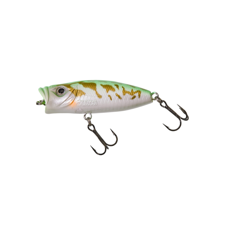 L'Hedorah 43 F est un mini popper stable et compact, qui se lance avec précision. Facile à animer, que ce soit avec des tirées sèches pour produire un "Pop" efficace, où plus amples afin d'obtenir un "Walking The Dog" tout en glissades, ce leurre de surface attirera les carnassiers de loin ! Même les plus éduqués se laisseront séduire par le sillage de micro bulles qu'il génère et sa nage erratique. Un leurre pour les pêches d'été, idéale quand il faut descendre en taille pour séduire les perches, black-bass,chevesnes,ides...