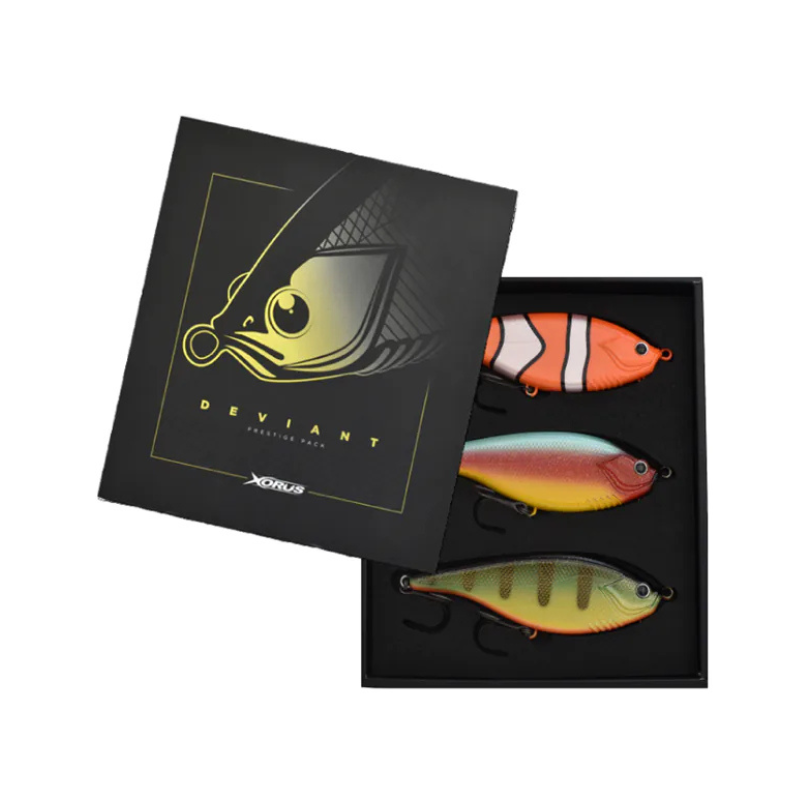 Jerkait devenu rapidement incontournable auprès des pêcheurs de brochet, le Deviant a séduit par sa polyvalence, sa facilité d’utilisation et son efficacité. Que l’on pêche des zones peu profondes ou des fosses, à vitesse lente ou très rapide, ce jerkbait vous permettra de bénéficier de toutes les qualités de cette famille de leurres tout en vous adaptant à l’humeur des brochets le jour J. Avec quelques coups de scions, il effectuera de brusques écarts latéraux tout en émettant beaucoup de bruit mais il est également possible de l’utiliser via une simple récupération linéaire pour déclencher une nage en « S » plus furtive … Il dispose d’une grosse bille interne qui lui confère une sonorité particulièrement grave et idéale pour stimuler l’agressivité des carnassiers. Notez également qu'un point d'attache positionné sous la gorge permet de lui fixer un lest additionnel afin de le faire évoluer plus en profondeur. Que vous soyez déjà conquis ou en quête de découverte, vous trouverez dans ce prestige pack trois coloris exclusifs pensés pour sortir des sentiers battus et proposer une alternative aux coloris plus classiques tout en conservant l’assurance d’avoir une référence incontestée au bout de votre ligne !